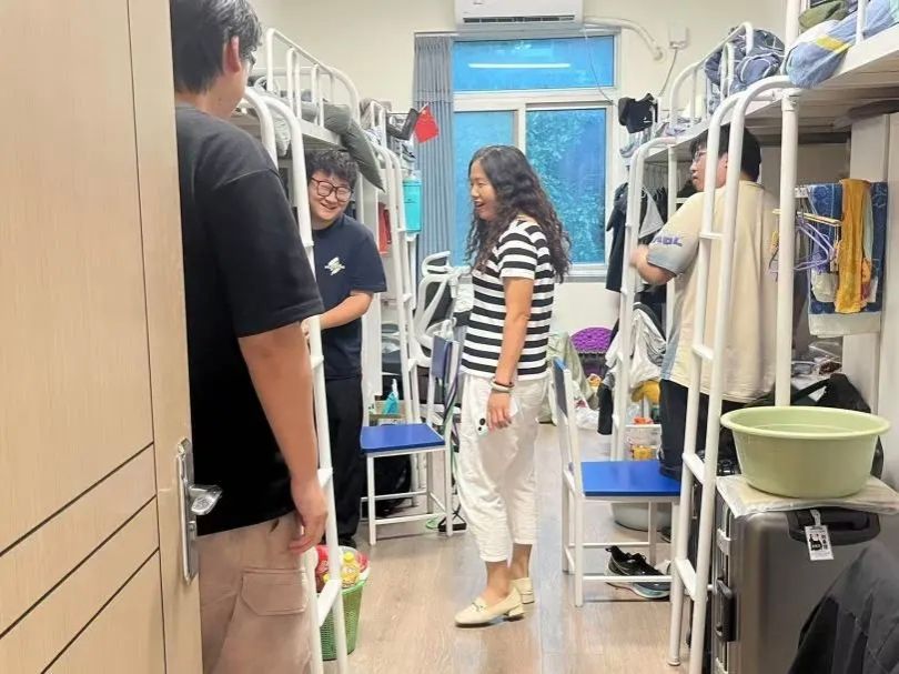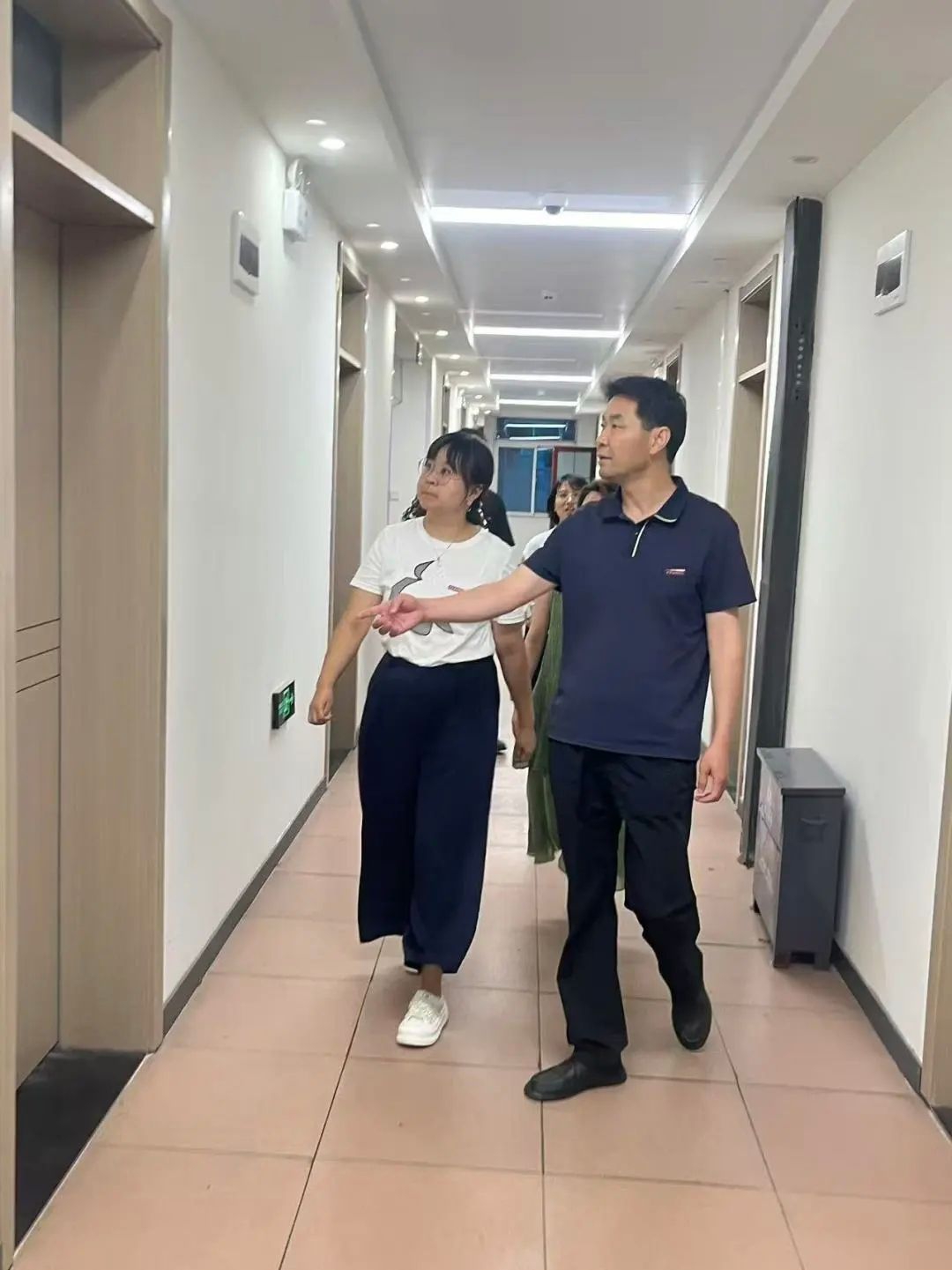 走访过程中,学院领导与辅导员们不仅送上了防暑降温用品,还对宿舍的卫生状况、消防安全设施、电器使用情况等进行了细致检查,并结合前期暑期安全教育主题班会的内容,现场再次进行了安全提醒和教育。