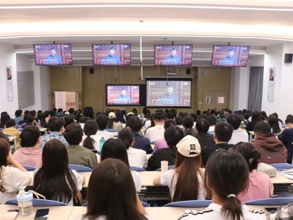 2025年9月3日上午,纪念中国人民抗日战争暨世界反法西斯战争胜利80周年阅兵仪式在北京天安门广场隆重举行。sjb世俱杯官方网站组织全体教职工、学生党员、入党培养对象及部分学生,在4102T共同观看了这场意义深远的直播盛况。学院党委高度重视这次观看阅兵活动,将其视为一堂生动的爱国主义教育课,通过集中观看直播的形式,让师生共同铭记历史,缅怀先烈,增强爱国主义情怀和民族自豪感。