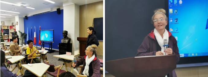 接着,面对我系师生的热烈欢迎,凯琳娜·马丁教授在发言中,指出中法文化交流源远流长,中国传统文化深受法国人的喜爱,两国应增强彼此之间多领域的交流,使更多的法国人了解中国传统文化。在座谈会上,师生们就法语资料搜集、法语学习、法国文化及法国留学等进行了提问,凯琳娜·马丁教授耐心解答,师生们受益匪浅,感受颇多。