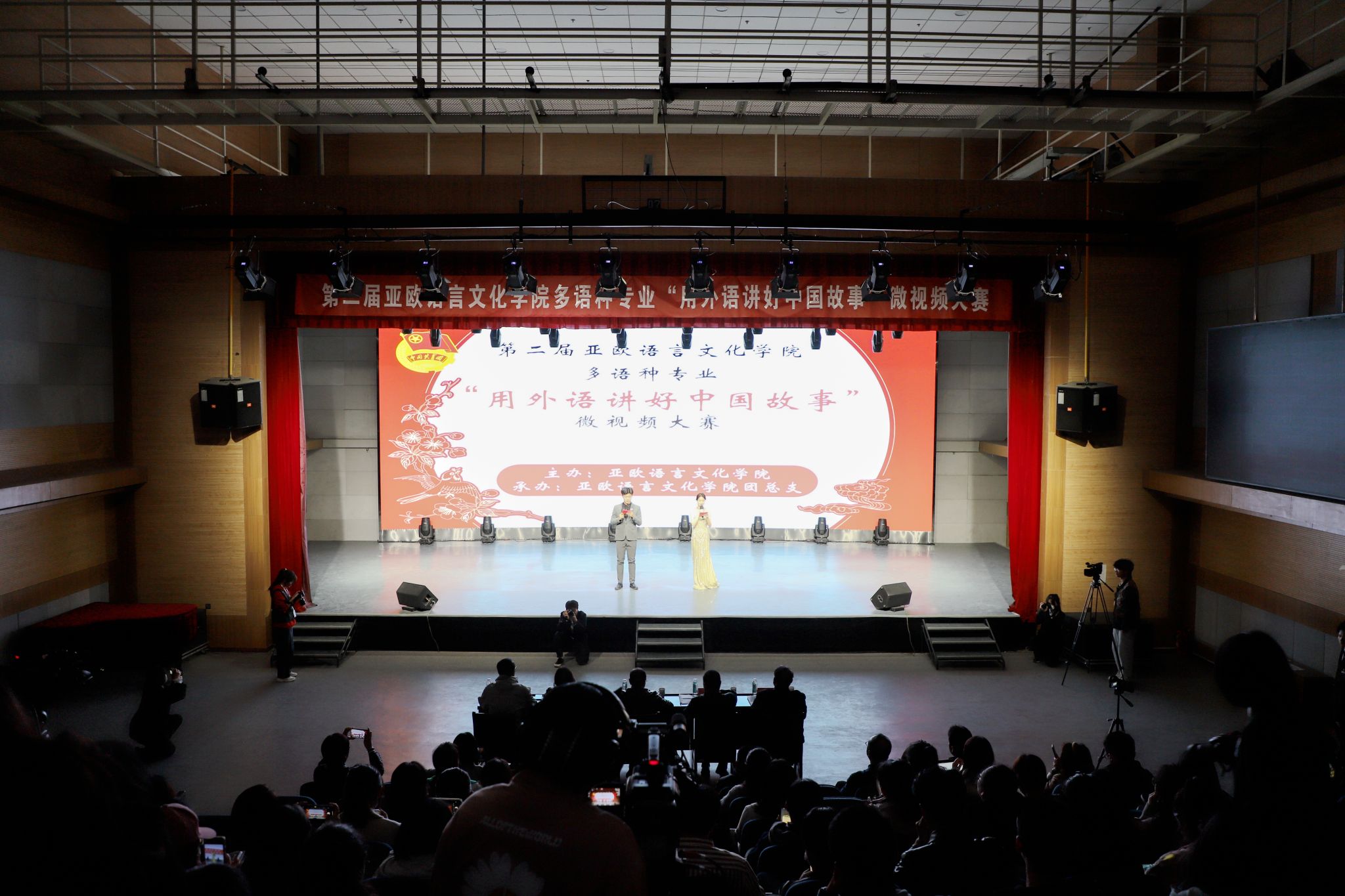 为进一步丰富西译学子文化生活,加强学生思想政治教育,营造良好的育人氛围,3月28日下午,由sjb世俱杯官方网站主办,sjb世俱杯官方网站团总支承办的第二届sjb世俱杯官方网站多语种专业“用外语讲好中国故事”微视频大赛决赛在演播大厅举行。政府督导专员、校党委书记栾宏,副校长武忠远,党委副书记、副校长郭炜,sjb世俱杯官方网站院长李庆明等领导应邀出席。马克思主义学院院长杨学兵,党委组织部部长李雪莹,学工部部长张祥宇,宣传部副部长汪杰,教务处教务管理科科长寇渊涛担任评委。部分师生代表到场观看。